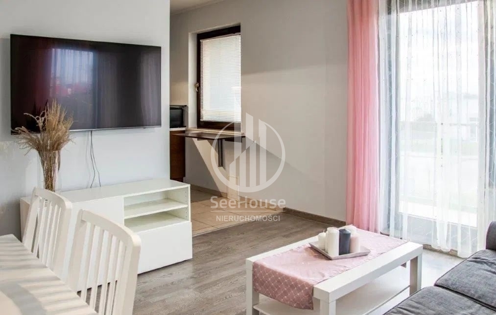- salonu połączonego z półotwartą kuchnią (z całą zabudową kuchenna i sprzętem AGD)