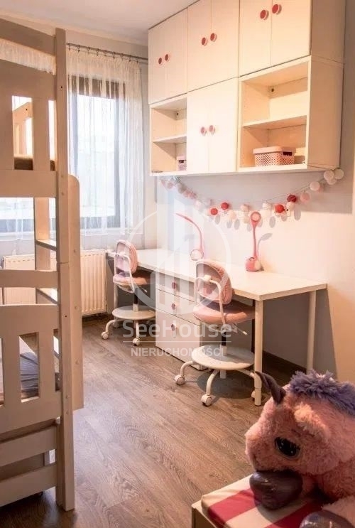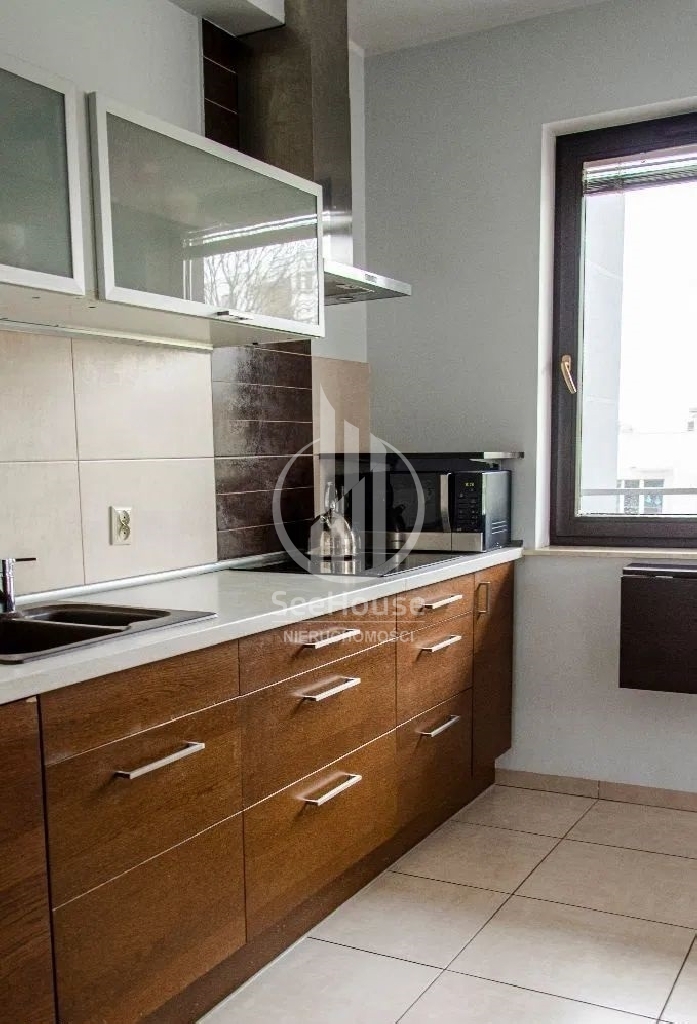 Mieszkanie zostało odświeżone 3 lata temu, jest w bardzo dobrym stanie technicznym. Ściany malowane, na podłodze (poza kuchnią i łazienką) panele. Wysokość mieszkania to 2,70. W kuchni zabudowa IKEA wraz z wszystkimi sprzętami AGD (zmywarka, lodówka, piekarnik, płyta indukcyjna). W przedpokoju szafa typu komandor, w garderobie i sypialni głównej zestaw szaf na wymiar. Łazienka z wanną.