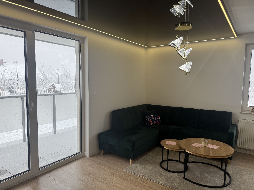 Mieszkanie jest zupełnie nowe, umeblowane i nowocześnie wyposażone w wysokiej jakości sprzęt AGD, w tym pralkę, zmywarkę i lodówkę. Istnieje możliwość doposażenia mieszkania, do uzgodnienia z właścicielem.